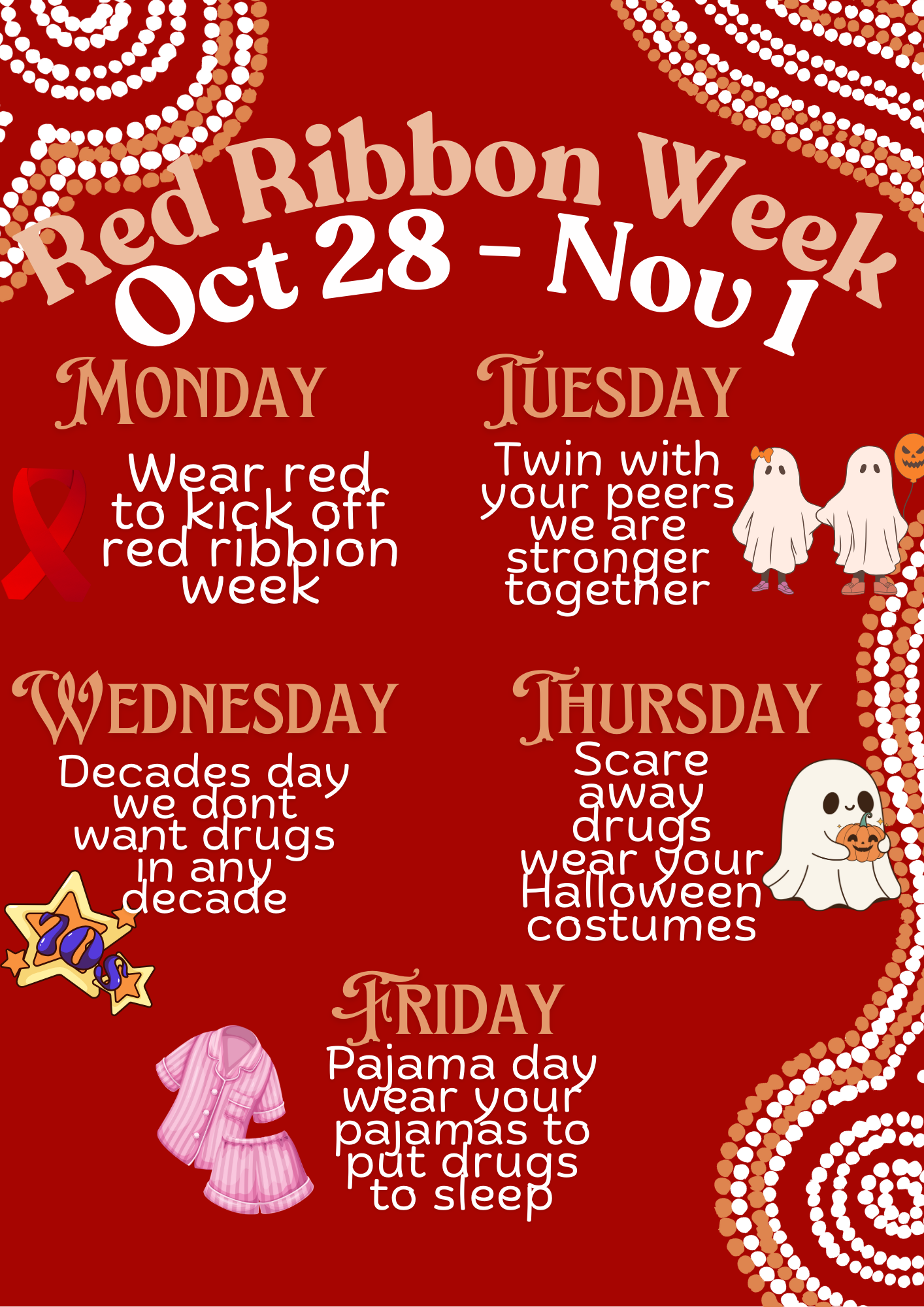 Monday- 10/28- Wear Red- to kick of red ribbon week